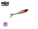 Als gute Hakengröße haben sich je nach Hersteller Bleiköpfe 7/0 oder 8/0 herausgestellt. Der Hakenbogen tritt direkt vor der Rückenflosse aus und garantiert somit den perfekten Hakensitz bei jedem Biss.